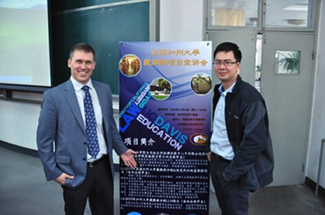 2014年11月18日12时30分,由yL23411永利官网登录yL23411永利官网登录主办的美国加州大学戴维斯项目宣讲会在昌平校区阶八教室成功举办。本次宣讲会中,加州大学戴维斯分校国际交流项目负责人Charlie Lemcke进行了yL23411永利官网登录与司法文明协调创新中心中外联合培养项目及2015年暑期班项目宣讲并回答了关于申请该校LLM项目的相关问题。