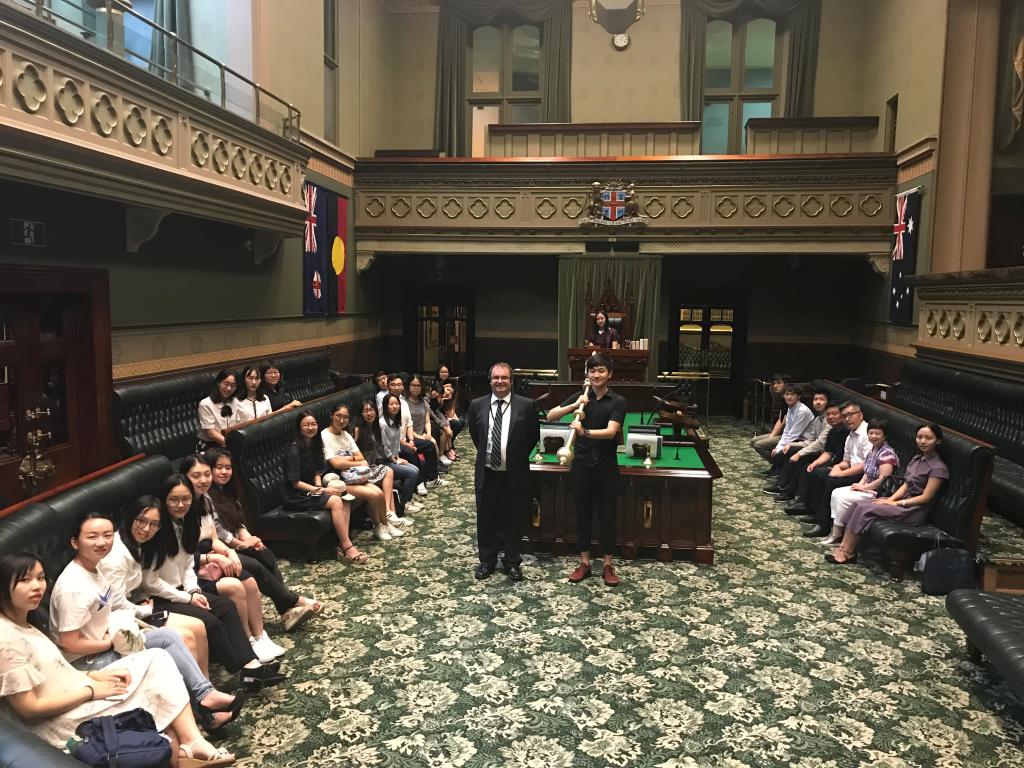 在课程之外,西悉尼大学做了精心的安排,组织同学们参观了澳大利亚新南威尔士州的最高法院和州议院,旁听了案件审理,还参观了州议会,非常有趣的是在下议院讲解员让学生们通过角色扮演,模拟议院的议案表决程序,不同党之间是如何争吵并通过议案的,使学生们深切体验到新南威尔士州的法律系统以及政治运作体系。