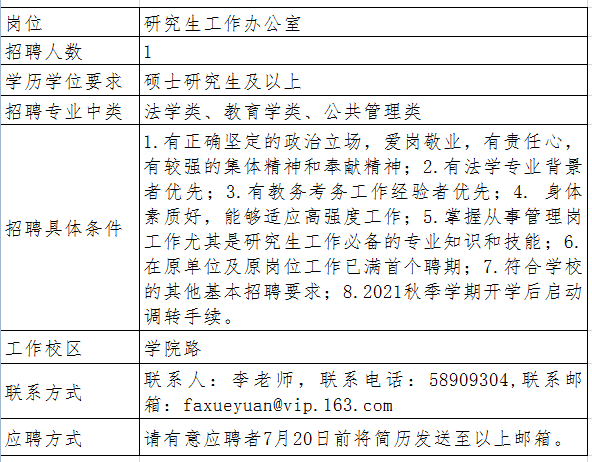 根据学院工作需要,现面向校内公开招聘管理岗人员1人,具体岗位和招聘要求如下: