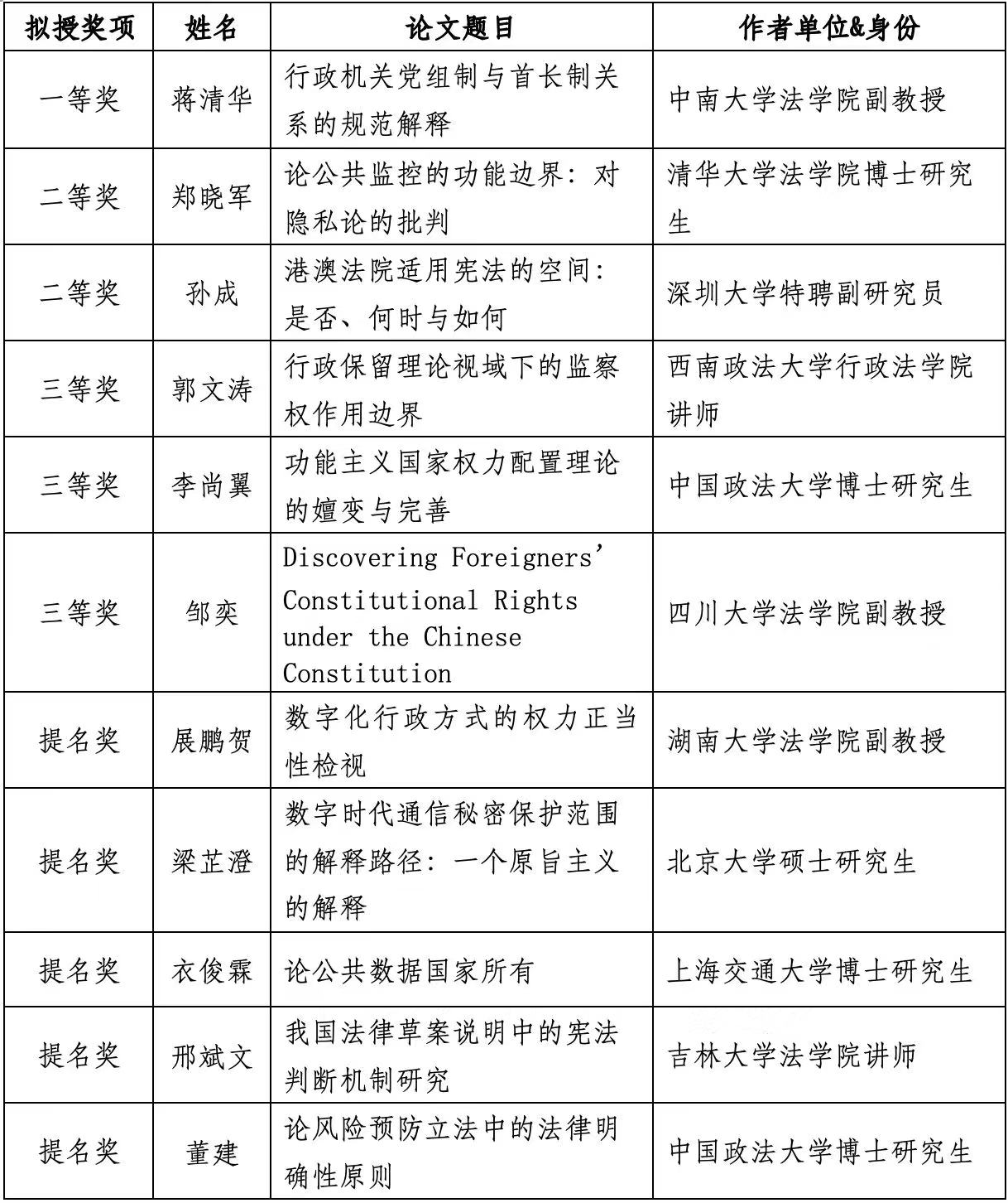 公示期间为 2021年11月18日至2021年11月24日,在公示期间内任何人可以对拟获奖论文的原创性提出异议。异议请发至蔡定剑宪法学教育基金的邮箱:cdjxfxjj@126.com。