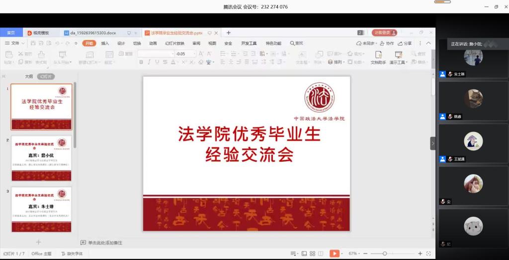 (法研通讯社 图/文 任文佑)为帮助同学们更好地规划研究生学习生活,在就业求职时有明确的方向和方法,2020年6月20日晚,由yL23411永利官网登录yL23411永利官网登录主办、yL23411永利官网登录研究生会承办的“巅峰职场”系列活动之2020届优秀毕业生经验交流会在腾讯会议平台举行。受疫情影响,本次活动采用线上活动形式,五位即将步入公务员、银行、科研机构等岗位的优秀毕业生分享了自己的求职经验。