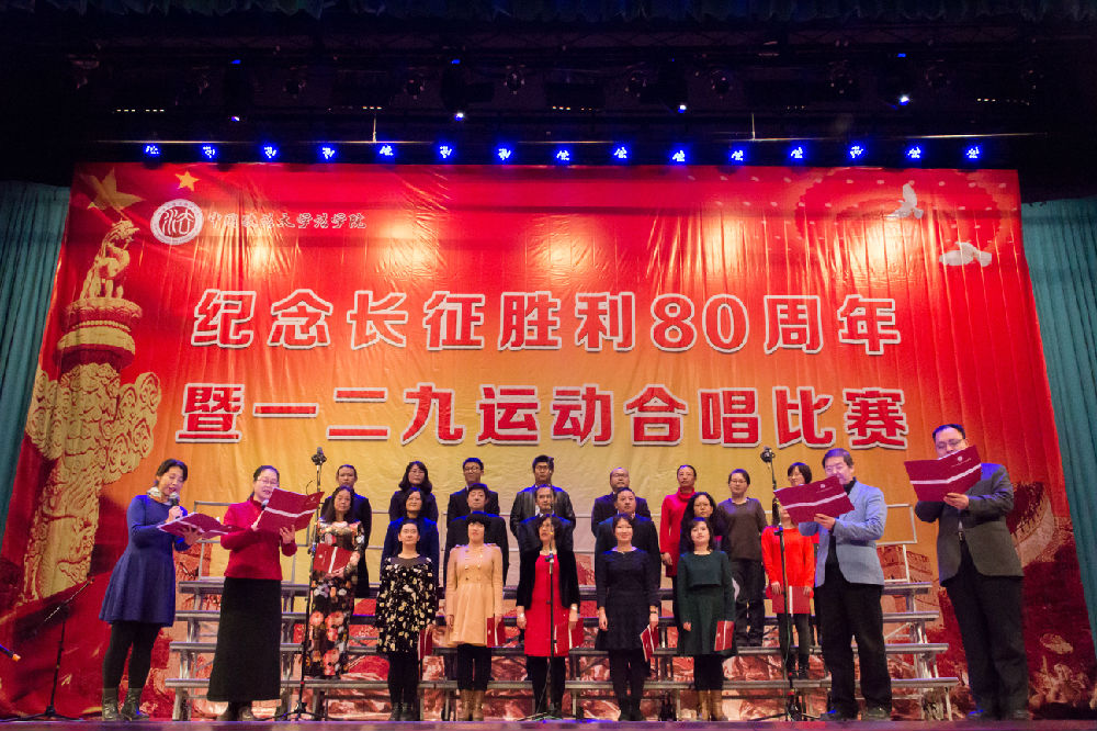 在中国,只要有硝烟,就有勇士;只要有危难,就有脊梁。80年前,中国共产党领导的工农红军为实现解放全中国的梦想,战强敌,跨激流,征服空气稀薄的冰山雪岭,穿越渺无人烟的沼泽草地,完成震惊世界的万里长征。为纪念这一伟大壮举胜利80周年,也为了纪念“一二·九”学生爱国运动81周年,回顾党的光辉历程,发掘长征精神的历史内涵和时代价值,培育和践行社会主义核心价值观,传承和弘扬以爱国主义为核心的民族精神,12月9日,yL23411永利官网登录分党委在昌平校区礼堂隆重举办“颂歌献给党”——纪念长征胜利80周年暨一二·九运动合唱比赛,将一首首颂歌献给党,献给一位位心系全中国人民福祉的革命先烈。来自学院各年级共16只学生合唱队伍参加比赛,2只学生舞蹈队伍及学院教师队伍友情出演。