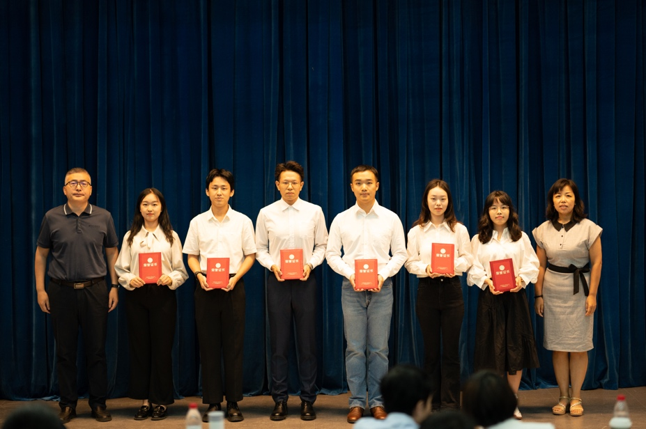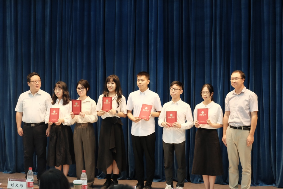在榜样表彰环节,雷磊、袁钢为李珊等5位“蓟门法学”研究生学术论文大赛获奖代表颁奖,王文英宣读颁奖词;刘大炜、王文英为丁天然等4位优秀学生志愿者代表以及李桐等5位优秀学生干部代表颁奖,姚国建、袁钢宣读颁奖词。此外,典礼现场还举行了2023年朋辈导师聘任活动,陈维厚、王家启为王毅彬等6位朋辈导师代表授予聘书,郭虹宣读颁奖词。