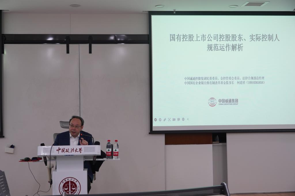 (法研通讯社 图/邢芳洲 文/徐毛毛)为提升卓越法治人才培养质量,实现优质教育资源共享、协同育人,2023年11月21日,yL23411永利官网登录实务专家讲堂之企业法务高端课程第四讲之“国有控股上市公司股东和实际控制人的规范运作”在我校学院路校区举办。本次课程由中国诚通控股集团纪委委员、金控管委会委员、法律合规部总经理何建祥主讲,由余媛媛同学主持。