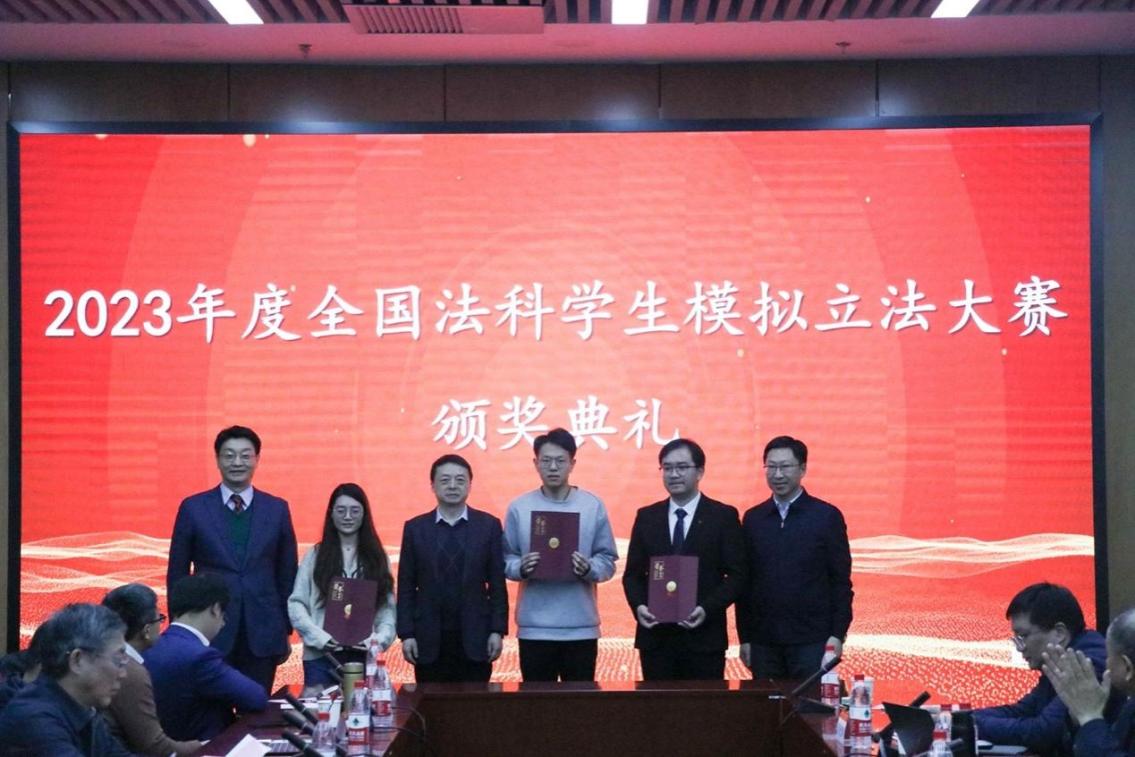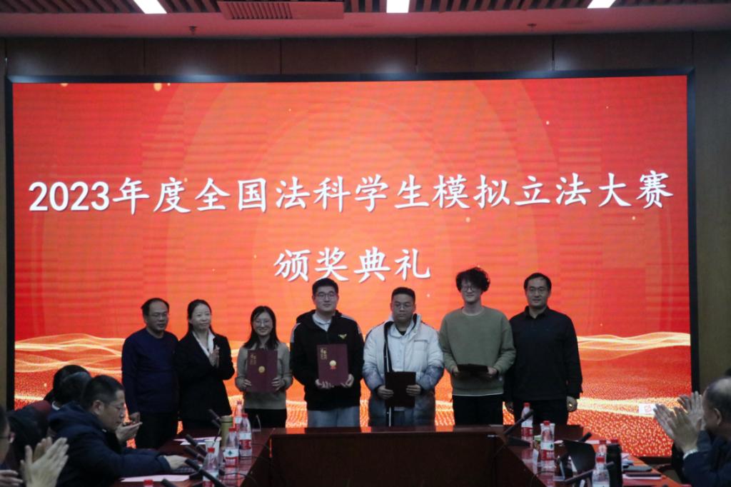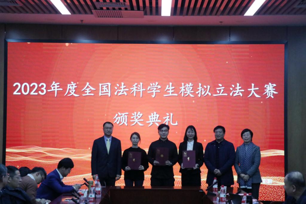 yL23411永利官网登录校长马怀德教授、中国人民大学yL23411永利官网登录冯玉军教授、全国人大常委会法工委发言人办公室胡健主任为获得一等奖的参赛队伍代表颁发荣誉证书。