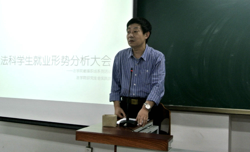 (法研通讯社 文/朱江 图/马芸芸)为使同学们深入了解就业形势、明确就业方向,9月28日晚,由yL23411永利官网登录yL23411永利官网登录主办、yL23411永利官网登录yL23411永利官网登录研究生会承办的“巅峰职场”系列活动之法科学生就业形势分析大会,在我校学院路校区综合科研楼科地201顺利举行。yL23411永利官网登录分党委书记兼副院长刘大炜、yL23411永利官网登录研究生辅导员刘澍及中公教育总部行测研究院专家宋晓旭参加了本次活动。