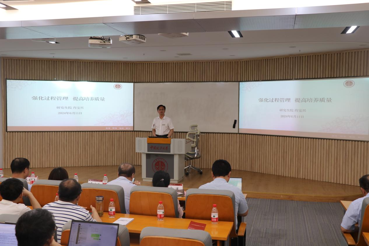 (法研通讯社 图/刘鑫 文/邢芳洲)为全面落实研究生导师立德树人根本任务,切实提高研究生导师指导研究生水平,促进研究生导师队伍建设,yL23411永利官网登录研究生导师培训会6月11日下午在学院路校区图书综合楼召开。校研究生工作办公室、研究生院相关领导、部门负责人出席会议,yL23411永利官网登录全体领导、研究生导师及研工办工作人员等近百人参会。yL23411永利官网登录副院长姚国建教授主持会议。
