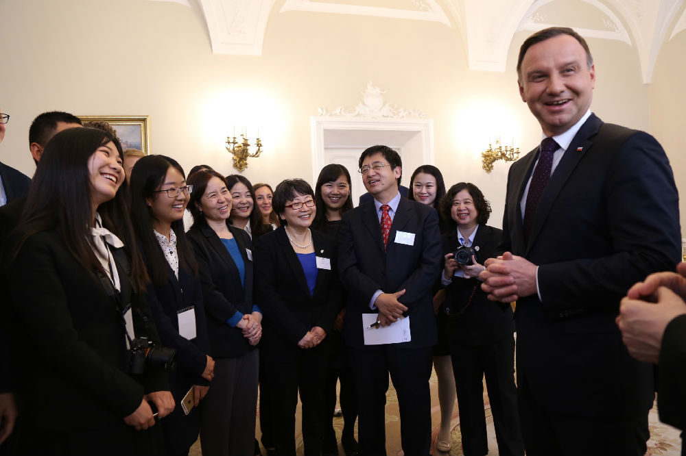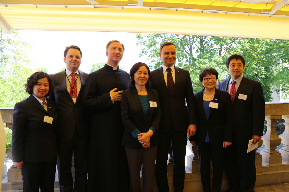 中午,中波师生一行集体前往总统府,在参观了总统府后,受到了总统及其团队的热情招待。在yL23411永利官网登录副校长高浣月、yL23411永利官网登录院长薛刚凌、yL23411永利官网登录副院长许身健、yL23411永利官网登录教授程韬与波兰总统进行友好交流后,波兰总统接受现场提问,会场气氛轻松愉快。随后波兰总统与中波yL23411永利官网登录师生握手合影,表达了对中波友谊长存的美好祝福。