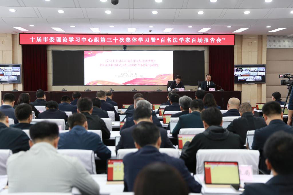 9月27日,大庆市委书记李世峰主持召开十届市委理论学习中心组第三十次集体学习暨2024年“百名法学家百场报告会”。他强调,全市各级党组织和广大党员干部要深入学习领会习近平法治思想的核心要义、丰富内涵和实践要求,进一步增强运用法治思维和法治方式推动发展、深化改革、化解矛盾、维护稳定的本领能力,不断开创全面依法治市工作新局面,为加快建设“三个城市”、推动高质量发展可持续振兴提供坚强法治保障。李岩松、陈宏伟、何英明、孙永刚、王绪新等出席。