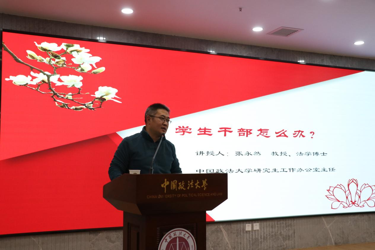 张永然主讲“如何做好学生干部”。他指出一名合格的学生干部需要做到以下四点:一是胸怀服务同学的格局境界,以志愿服务精神为初心使命;二是锤炼知法明纪的理论水平,强化政策理论学习;三是提升才能兼备的工作能力,有效团结集体组织成员;四是掌握因人而异的工作方法,运用心理知识体察他人处境。此外,学生干部还要具备扎实能力和过硬本领,做到想干事,会干事,干成事,并从思想引导、活动组织、交流沟通三个方面为大家详细讲解。最后他激励学生干部要掌握技巧、发扬奉献精神,为yL23411永利官网登录学子打造积极向上的集体氛围。
