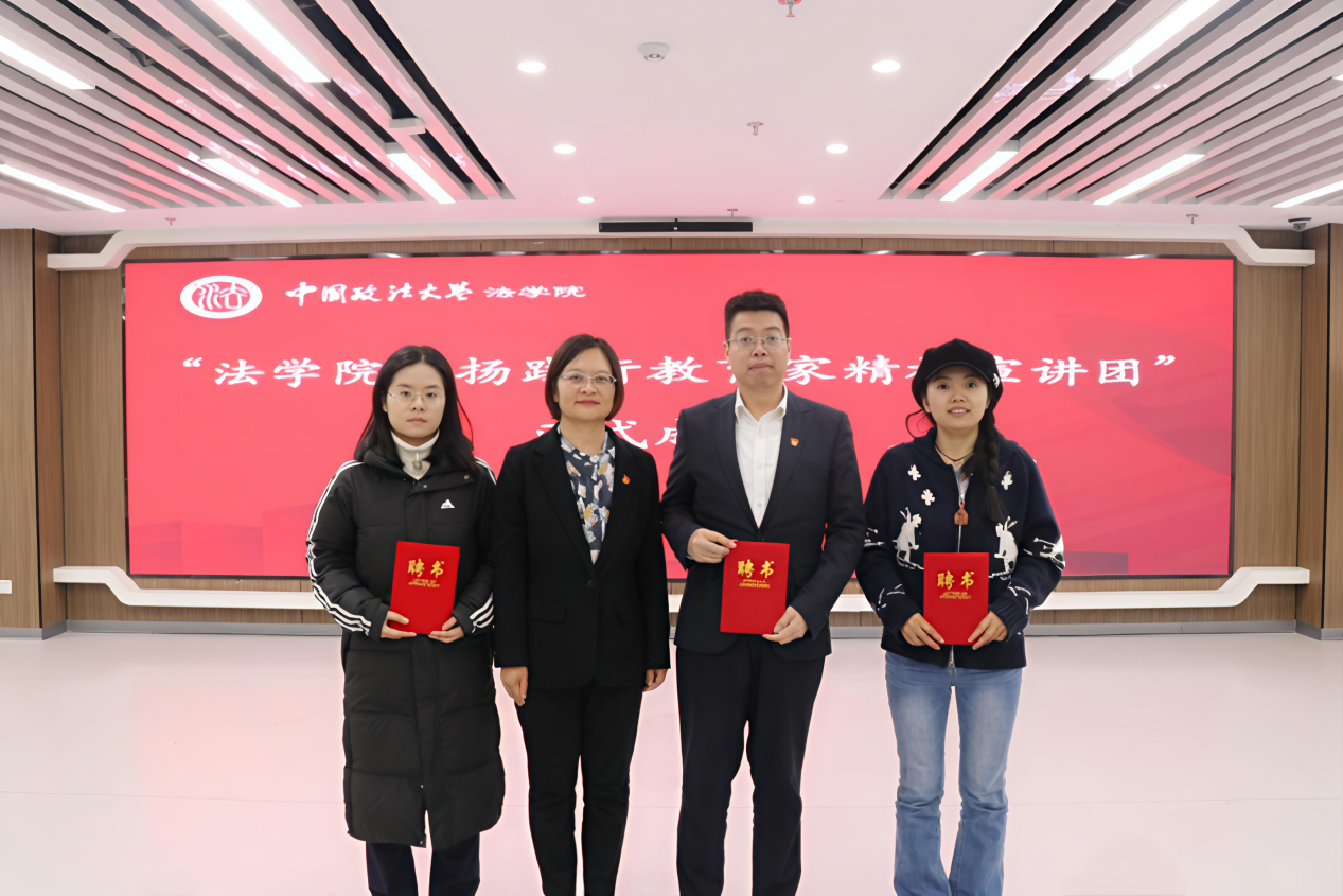 陈维厚宣读yL23411永利官网登录关于成立宣讲团的决定,聘任张京凯为弘扬践行教育家精神宣讲团顾问,法律史博士生赵佳菡等为宣讲团成员,王文英为宣讲团成员代表颁发聘书。