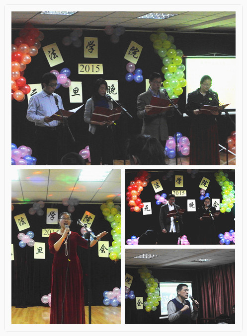 (法研通讯社 文/范志云 图/燕丽华)12月30日晚,由yL23411永利官网登录yL23411永利官网登录主办、yL23411永利官网登录yL23411永利官网登录研究生会承办的yL23411永利官网登录2015研究生元旦晚会在我校学院路校区老干部活动中心拉开帷幕。出席本场晚会的嘉宾有:yL23411永利官网登录分党委书记兼副院长刘大炜,yL23411永利官网登录副院长焦洪昌,yL23411永利官网登录分党委副书记兼副院长王文英,yL23411永利官网登录研工办主任陈维厚、yL23411永利官网登录研工办老师王家启,院办的李仁燕老师、韦婷老师,教科办的丛聪老师,以及法理学教师代表王新宇,军事法教师代表姜涛、张建田,宪法学教师代表张吕好、田瑶、周青风,行政法教师代表罗智敏。yL23411永利官网登录全体研究生参加了本次晚会。晚会由焦洪昌老师作了新年致辞。