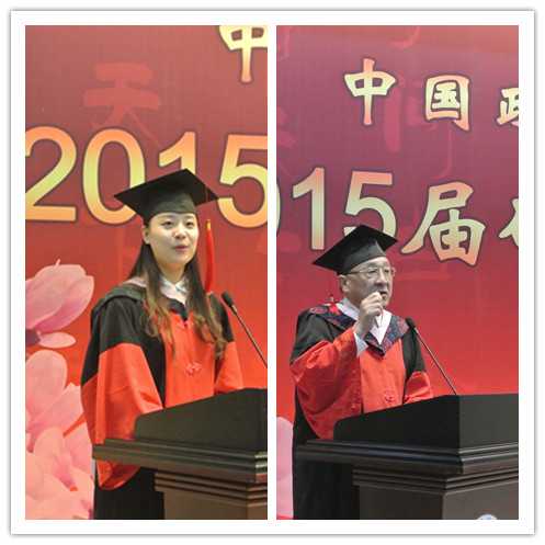 之后,2015届毕业生代表、来自法制史专业的博士韩啸和大家分享了自己对幸福的理解,并代表全体毕业生对学院领导和老师们的亲切关怀表示感谢。“世界那么大,我想去看看。”韩啸表示,毕业生们将会继续秉承校训,以“法治天下”为崇高理想,以维护公平正义为己任,追求法律人稳稳的幸福。来自台湾,现任美国律师工会会员、美国移民律师工会会员的本届毕业生张玉泉也在现场分享了其自身对学习分析方法的体会,并感谢法大给予了他宝贵的学习机会。