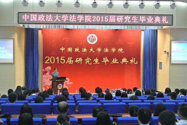 典礼开始前,播放了一段精心制作的毕业纪念短片。应松年、刘大炜、何兵、许身健、刘纪鹏等领导与教授的谆谆教诲,让毕业生们感受到老师的关怀与爱护;而各毕业班的学习生活照片剪影,则带领大家从2012年入学开始,回顾了过去三年的点点滴滴。在场的同学时而欢呼,时而感伤,沉浸在对法大的无尽回忆和留恋中。