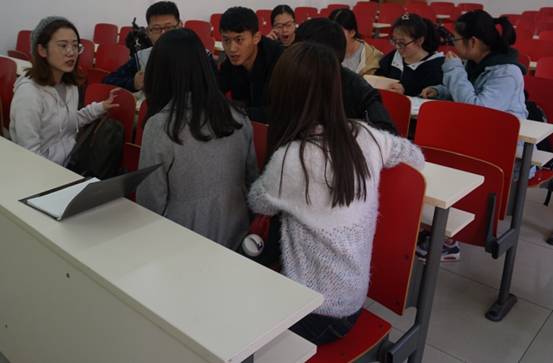 之后,同志们在个人学习和支部统一学习党的十九大精神的基础上,针对党的十九大报告和新修订党章内容展开了热烈的讨论,抒发了自己的理解和感受。赵一丹同志作为支部的第一批党员,联系自身的体会谈了对党的十九大精神的看法,他提到同志们一直在积极参与学生党员先锋工程、“两学一做”教育实践活动,思想觉悟、党性修养、现实表现都有很大提高。