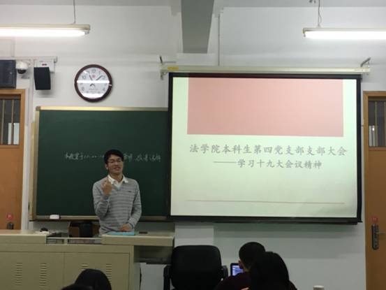 之后,同志们在个人学习和支部统一学习党的十九大精神的基础上,针对党的十九大报告和习近平新时代中国特色社会主义思想等内容展开了热烈的讨论,抒发了自己的理解和感受。索东汇同志以对习近平总书记党的十九大报告精神的认识,具体阐述了新形式下对于党员纯洁性的要求。他还谈到,党的十九大报告重点强调了坚持全面依法治国与深化依法治国的实践,体现了依法治国建设的重要性,作为一名法学学子,深感自豪与责任重大。