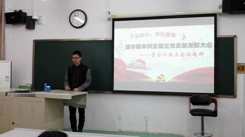 中国共产党第十九次全国代表大会胜利闭幕之后,yL23411永利官网登录yL23411永利官网登录本科生各党支部在yL23411永利官网登录分党委的统一领导下,举办了以“深入学习习近平总书记党的十九大报告精神”为主题的专题学习会。同志们通过集体学习、专题讨论、播放纪录片等多种形式,领会习近平总书记在党的十九大会议的精神实质与丰富内涵,并内化于心、外化于行,立德树人、德法兼修,为实现中华民族伟大复兴的中国梦贡献法大的力量。