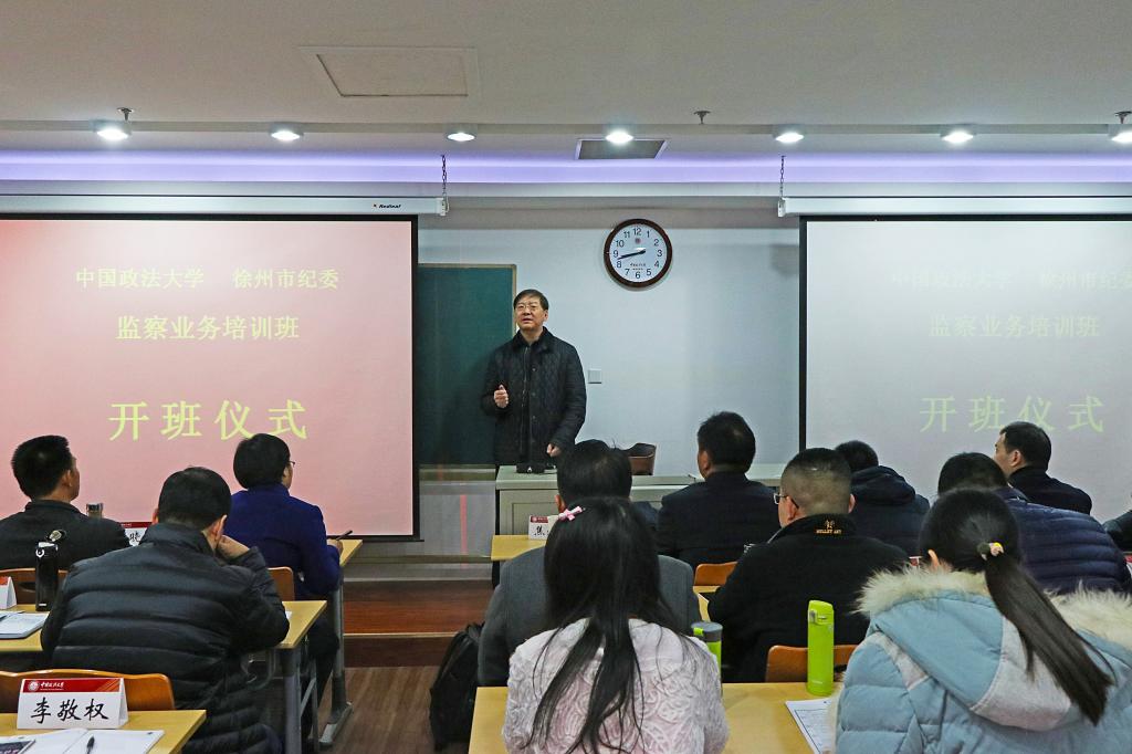 焦洪昌对来参加培训的徐州市纪委有关人员表示热烈欢迎。他介绍了本次培训的意义与背景,指出本次培训班以学习党的十九大报告和监察业务为主要内容。他表示yL23411永利官网登录作为教育部确定的“双一流”院校,其法学一流学科实力雄厚,师资力量位列全国前茅,yL23411永利官网登录不仅有江平、陈光中、张晋藩等老一辈泰斗,也有黄进、马怀德等中生代教授,更有无数的青年学者。以国家公法为主要研究对象的yL23411永利官网登录,集中了一批全国顶尖的公法学者,能够为本次培训提供智力支持,并且yL23411永利官网登录拥有丰富的培训班举办经验,能够保障本次培训班顺利进行。