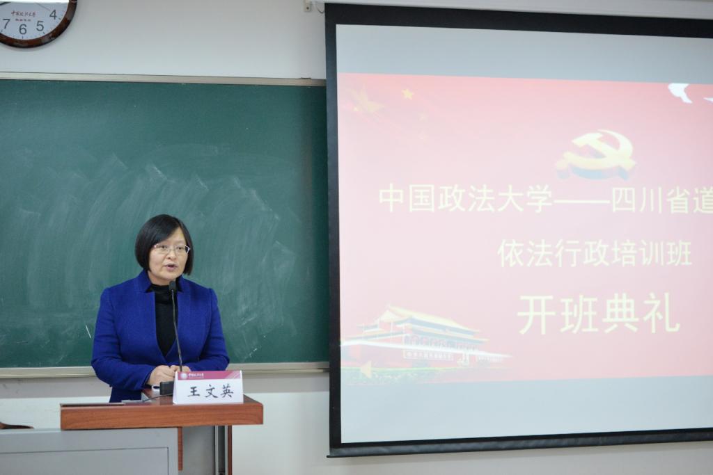 王文英对前来参加培训的全体学员表示热烈欢迎。她指出本次培训班召开于党的十九大胜利闭幕之际,目的是为了贯彻落实党的十九大报告精神,增强领导干部法治思维,提升依法行政能力,促进法治政府建设。她表示yL23411永利官网登录作为我国法学教育的最高学府,拥有以江平、陈光中、应松年、张晋藩、李德顺等终身教授为代表的老一辈法学泰斗,也有以黄进、马怀德为代表的中青年法学才俊,师资力量雄厚,教学水平优异,以习近平总书记来法大考察为契机,yL23411永利官网登录必将迎来又一个黄金发展期。她指出yL23411永利官网登录在yL23411永利官网登录有着悠久的历史,其发展的过程中取得了傲人的成绩,yL23411永利官网登录为本次培训配备了优秀的教师团队,相信能为全体学员提供优异的学习条件,祝愿大家能在此次培训中学有所获。