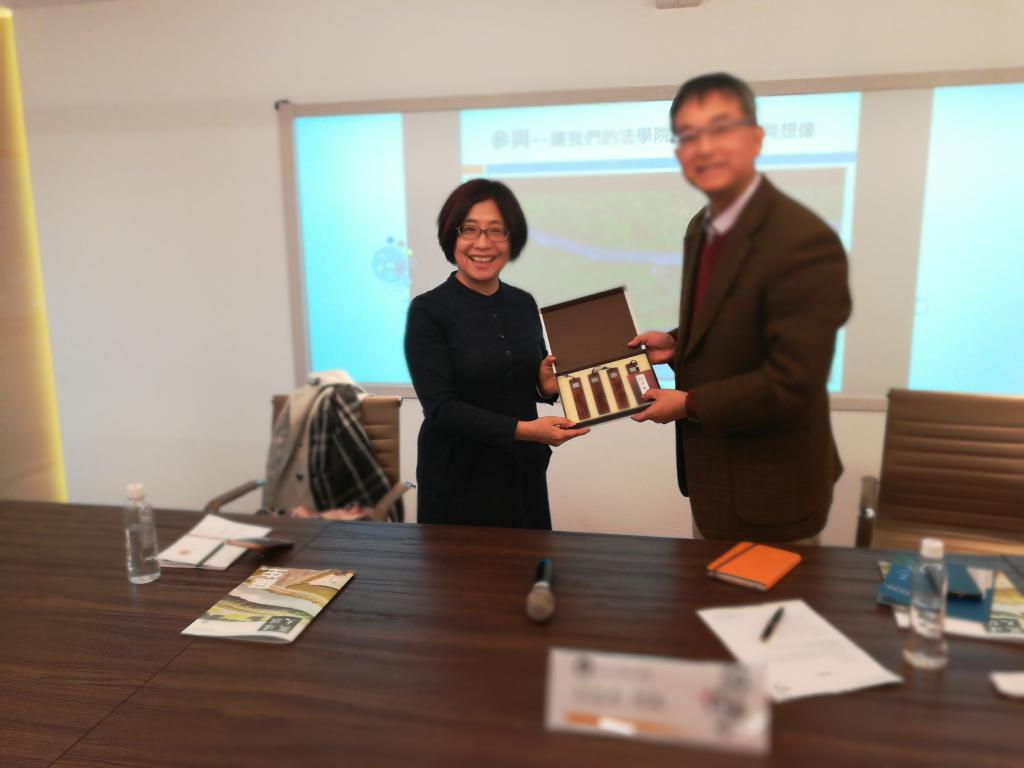 我校yL23411永利官网登录副院长薛小建教授与台湾政治大学yL23411永利官网登录院长王文杰教授互赠礼物