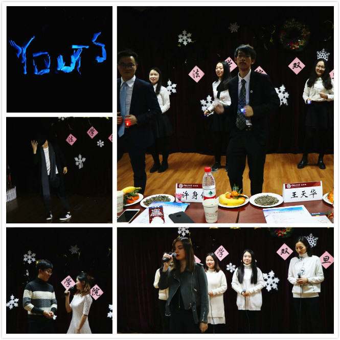 首先,许身健发表新年致辞。伴随着欢快的音乐声,研究生会文体部以开场舞《celebrate》拉开晚会帷幕。在主持人风趣幽默的开场白后,16级宪行1班为大家带来了歌曲串烧《给你们》,欢快的歌声引燃了现场的气氛。随后学术部的小品《手机重症监护室》,剖析了现代人的手机依赖症,引起共鸣。15级法律史李宏基的独舞《说了再见》惊艳全场。而17级法硕班深情合唱的《后来》,则用美妙的歌声让现场观众深深折服。
