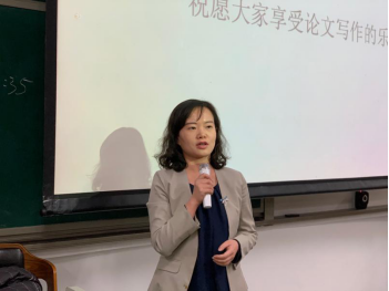 接下来,谢晶老师针对王老师的讲座谈到了自己的感受。谢晶老师从王老师讲到的论文选题进行延伸,告诉同学们可以通过社会调研,寻找到新颖独特的论文选题,而不必拘泥于传统的理论性题目。