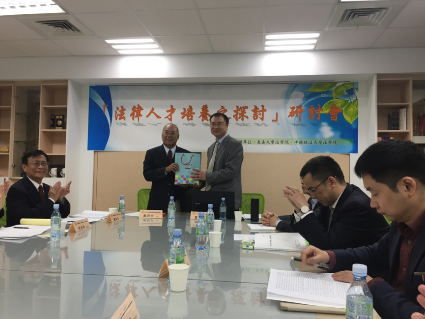 1月8日,访问团与东吴大学yL23411永利官网登录共同举行了“法律人才培养之探讨”研讨会。访问团全体成员与东吴大学yL23411永利官网登录院长郑冠宇教授、杨奕华教授、陈清秀教授、成永裕副教授、李春福副教授、黄心怡副教授以及官朝永律师事务所官朝永律师等出席会议。郑冠宇教授与雷磊教授首先致辞,对双方yL23411永利官网登录共同致力法律人才培养表达了深切期望,并互赠了礼物。随后,成永裕副教授就“法律人养成教育中如何培养专业伦理的知与行”作了精彩报告,董静姝讲师就“当代中国法学教育中的立德树人”分享了自己的见解;郭晓飞副教授、李春福副教授、邓建副新教授、官朝永律师分别就司法责任制话语建构中的断裂、民初大理院非常上诉判决、1950年代律师队伍建设、台湾律师的教育与训练作出深入阐释和论述;杨奕华教授以自身数十年教学经验分享如何“追求一个法学教室里的圆”的心得,刘坤轮副教授详细介绍了中国法律职业伦理发展脉络,陈清秀教授对学术伦理规范作出澄清和强调;黄心怡副教授与张吕好教授分别就法律职业伦理英美法案例教学、法学案例教学方法的比较分享了宝贵经验。在自由讨论时间,与会学者专家和来自中国大陆的烟台大学前校长房绍坤教授、西北大学yL23411永利官网登录副院长代水平副教授以及北京大学交换生等教师和学生就法律人才培养展开更加深入、活泼的交流。最后研讨会在黄心怡副教授和雷磊教授令人丰满、深刻而有力的总结致辞中圆满落下帷幕。