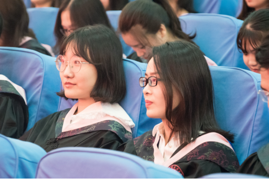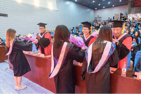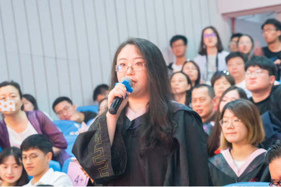 在场的毕业生对老师们表示感谢,并一同合唱《再见》,现场氛围热烈,令人动容。最后的学位授予仪式上,毕业生们依次上台接受老师们的拨穗授予,并与老师合影留念。