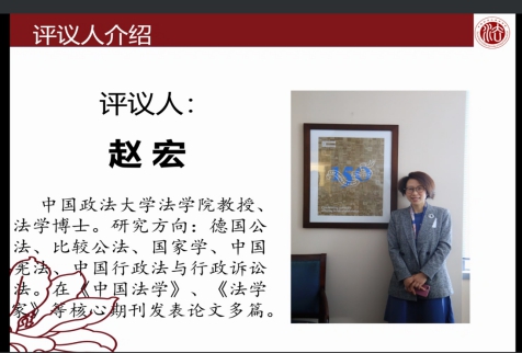 在王天华教授对杨晓萌博士的论文作出点评后,中国政法大学yL23411永利官网登录的赵宏教授对文章进行评议。赵宏老师首先肯定了这篇文章的主题,进而就文章如何深化提出了三点建议:首先,文章的序言部分,应当对使用“诉的利益”理论的基本背景做一个大致交待;此外,文章的撰写应当置于行政诉讼的背景下,就“诉的利益”进行阐释;最后,完善论文过程中还需要注重学术写作规范,以增强论文可信度。