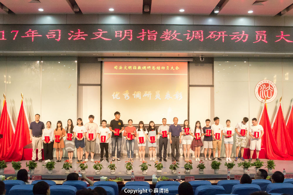 yL23411永利官网登录“司法文明指数”问卷调查活动是国家“2011计划”司法文明协同创新中心项目组为贯彻落实党的十八届三中、四中全会重要精神,全面了解各地司法文明指数、推进司法工作建设而在我校启动的重要社会实践活动。2017年,亦即活动开展的第三个暑期,我校300学子将“兵发”93个城市开展中国司法文明指数问卷调查。本次司法文明指数调研培训动员大会的成功召开,不仅丰富了调研员的技能素养,更增强了大家的专业意识与责任意识。相信各调研员在本次大会的鼓舞下,严格要求、努力工作,为我国司法文明建设贡献自己的力量。