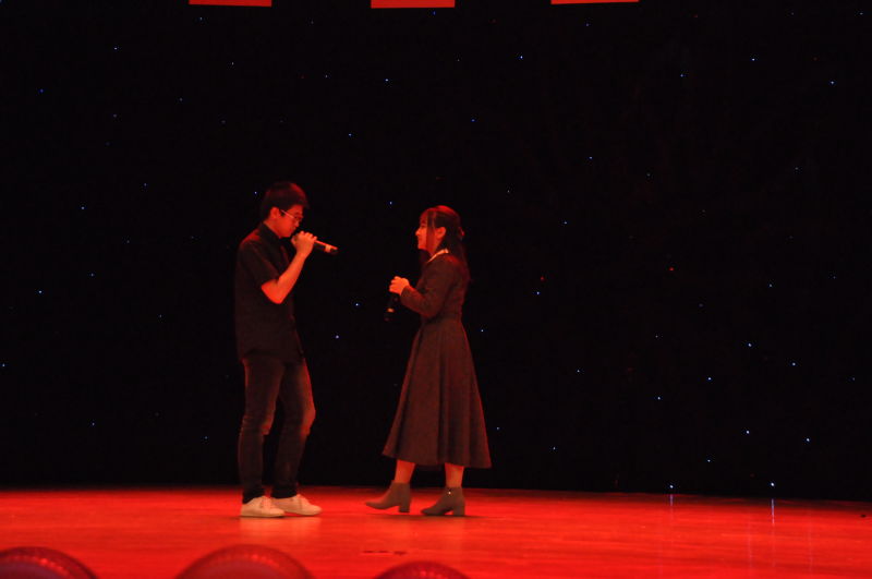 首先,街舞社W少女团以一支魅力四射的《talk to you》将大家带入热烈积极的气氛。随后,16级的小鲜肉们依次上场。1601班的同学们为观众带来了极具创意的歌曲串烧《爱情修炼手册》和古风古韵的古筝独奏《山丹丹花开红艳艳》。1602班的同学们也不甘示弱,带来了深情的合唱《My love》、诙谐的相声《满腹经纶》以及热情的舞蹈《咋了爸爸,barbarbar》。形式丰富的节目,幽默诙谐的编排,展示了1602班同学们的多才多艺。1603班的同学们则送上了小品《机场培训师》和口琴伴唱《未闻花名》。诙谐新颖的小品,改编动人的歌曲,将晚会的气氛点燃,营造了欢乐温馨的气氛。1604班的同学们呈现了独唱《你还要我怎样》、合唱《后来》以及舞蹈《Canvas》。歌舞结合的表演形式,展示了他们满满的诚意。