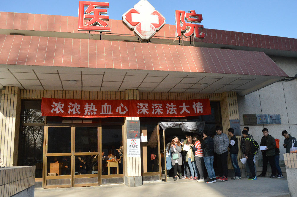 今早的法大校园里,仍然留有一丝春寒的余韵,但法大学子心中的热情没有丝毫减退。早上8点钟,在校医院的门口前,前来参与无偿献血的同学们已经排起了长长的队伍。在拥挤的人群中,今年大三的许奕圣同学正在等候。稍显成熟的脸上,隐约透着淡定与从容。