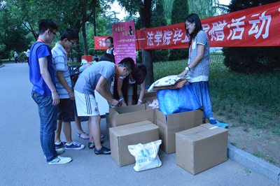 又是栀子花开的季节,2014年6月9日8:30到16:30,由yL23411永利官网登录分团委主办、yL23411永利官网登录学生会承办的毕业捐赠活动在昌平校区组织开展。本次活动面向全校2014届毕业生,募捐地点位于法渊阁后的校道上,募捐所得物品将寄往贵州省遵义市习水县桃林乡沙溪完小学。