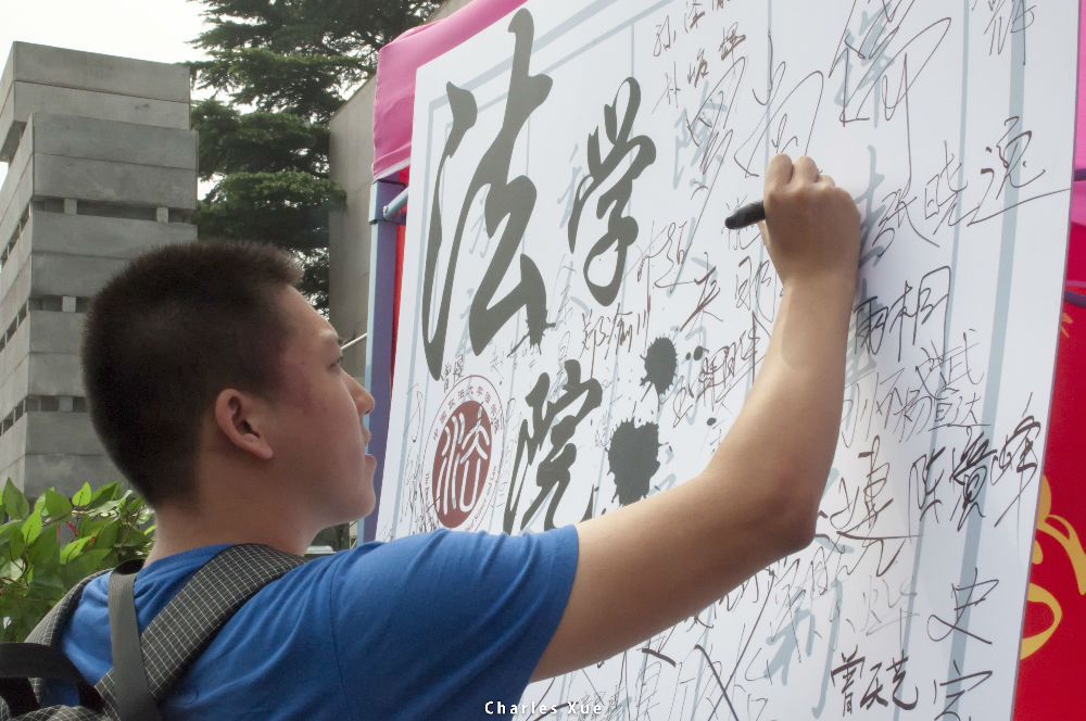 新生在签名版上签名留念