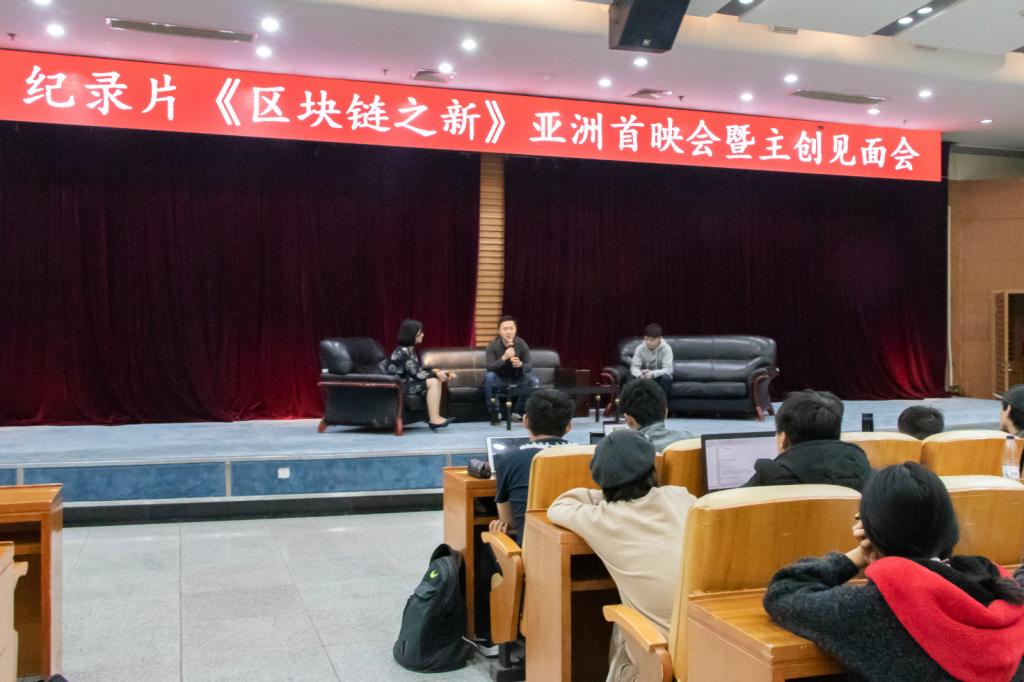 2018年11月13日下午4时,纪录片《区块链之新》第二集亚洲首映会暨主创见面会于我校学生活动中心学术报告厅成功举行。三橙传媒创始人,《区块链之新》总制片人陈一佳、Vechain唯链 Noah、Vechain唯链 COO Kevin Feng、BCH.Club 王宏利、比特大陆市场负责人 DIDI应邀参加此次首映。