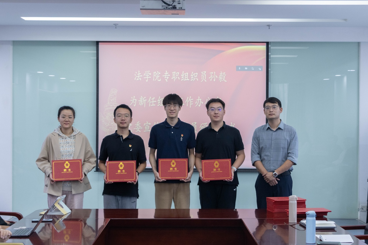 之后,yL23411永利官网登录党委专职组织员孙毅为新学期新任yL23411永利官网登录组织工作办公室、党委宣传中心成员颁发了聘书。