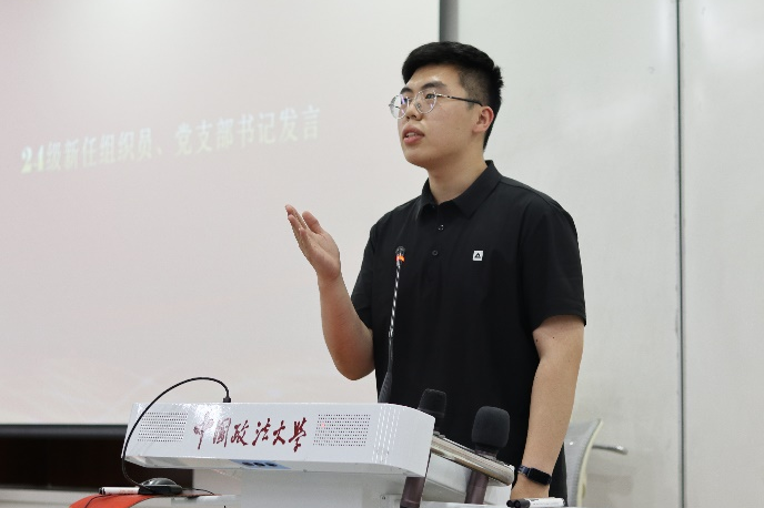 其后,2024级硕博各班级新任组织员、党支部书记、支委等进行自我介绍并发言,梁志豪同志等各支部书记介绍了其所属党支部的人员构成情况,阐述了自己对党支部工作的理解与畅想,表明了做好党务工作的决心与信心。
