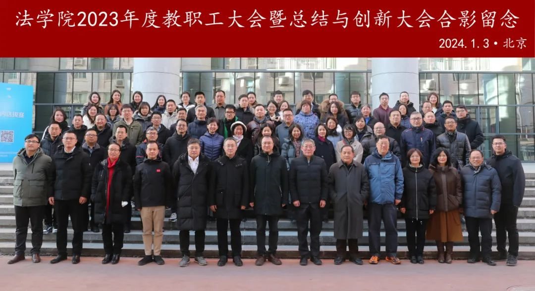 1月3日上午,yL23411永利官网登录召开2023年度教职工大会暨总结与创新大会。yL23411永利官网登录院长雷磊,党委副书记兼纪委书记王文英,副院长张力,副院长姚国建,副院长袁钢,教授委员会主席李树忠,兄弟单位特邀嘉宾我校法律史学研究院副院长顾元,法学教育研究与评估中心副主任刘坤轮,习近平法治思想研究院副院长林华,法与经济学研究院副院长徐文鸣,特邀嘉宾岳成律师事务所主任岳运生以及yL23411永利官网登录全体教职工等在海淀校区综合图书教学楼0112参加会议。会议由张力主持。