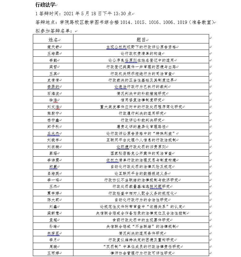 3、上述答辩时间及安排如遇调整,会第一时间在本网站公布,请所有答辩申请人及时关注本网站通知。