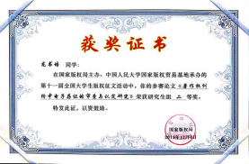 12月4日恰逢国家宪法日和全国法制宣传日,由国家版权局主办的第十一届全国大学生版权征文活动颁奖仪式在成都举行。中宣部版权管理局局长于慈珂,中共四川省委宣传部副部长、四川省版权局局长周青,中共四川省委教育工委副书记、教育厅党组成员李光华,安徽省教育厅副厅长储常连,成都市委宣传部副部长、市版权局局长师江,中国人民大学原校长助理、新闻学院院长倪宁教授以及法官、业界精英、高校师生等二百余人出席颁奖。