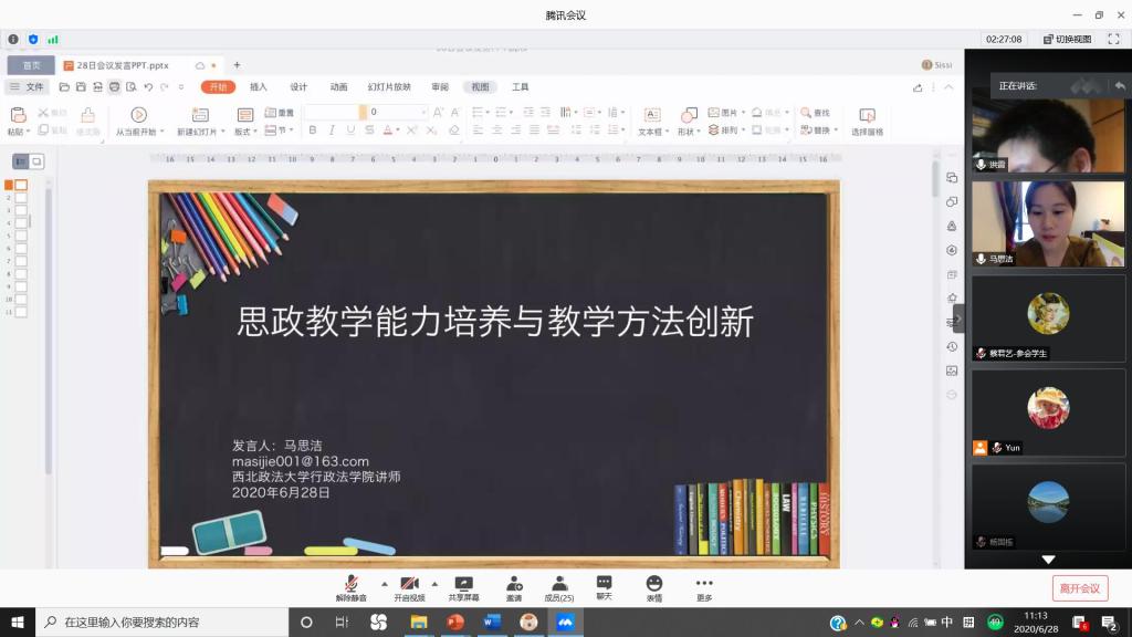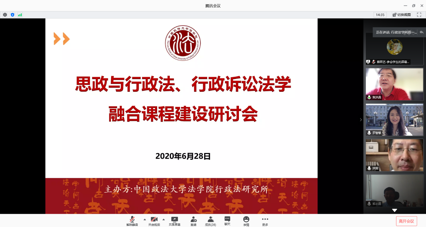 2020年6月28日,由yL23411永利官网登录yL23411永利官网登录行政法研究所举办的“思政与行政法、行政诉讼法学融合课程建设”研讨会在腾讯会议线上成功举行。本次会议是yL23411永利官网登录行政法研究所所长罗智敏教授牵头负责的yL23411永利官网登录首批“课程思政示范课”《思政与行政法、行政诉讼法学融合》的阶段性成果,来自yL23411永利官网登录、浙江大学、中国社会科学院、复旦大学、南开大学、华东政法大学、西南政法大学、西北政法大学、中南财经政法大学、北京航空航天大学、首都师范大学等高校和科研机构的30余名专家学者应邀参加此次研讨会,我校数名本科生、研究生亦参与了此次会议。